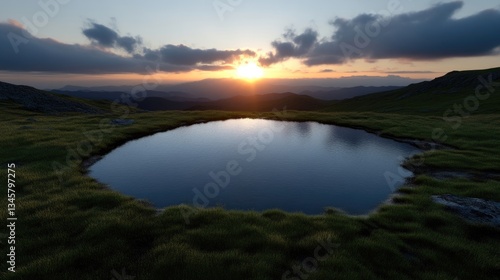 © BROPRADANA, Fototapeta premium Mountaintop pond at sunset