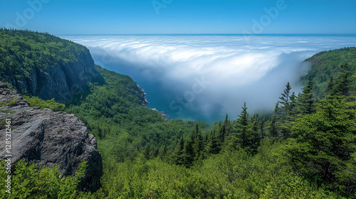 © muhaimin, Fototapeta premium Mountaintop View of Misty Valley