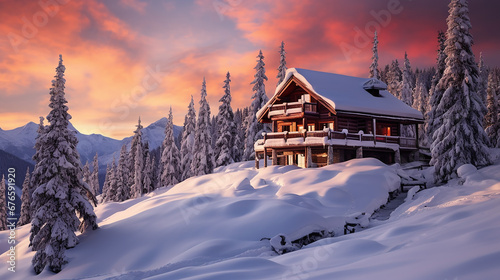 Fototapeta premium Mountein log cabin in winter