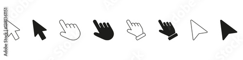 © Toxa2x2, Fototapeta premium Mouse Cursor And Hand Pointer Line And Solid Icon Set. Interactive Click And Navigation Gesture Symbol Collection. Isolated Vector Illustration.