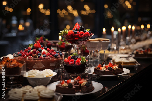Fototapeta premium mouthwatering photo featuring a buffet of gourmet dishes and desserts,...