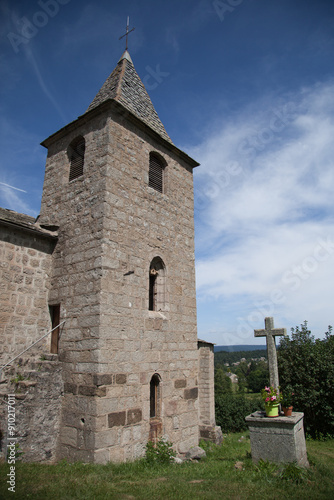 © Hervé Rouveure, Naklejka premium Moutier et croix du village de Mazet Saint-Voy en Haute-Loire