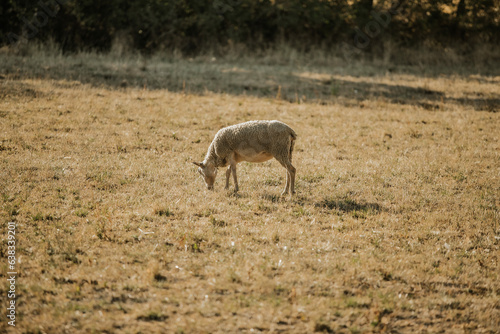 © jp, Fototapeta premium Mouton dans un prés au coucher du soleil
