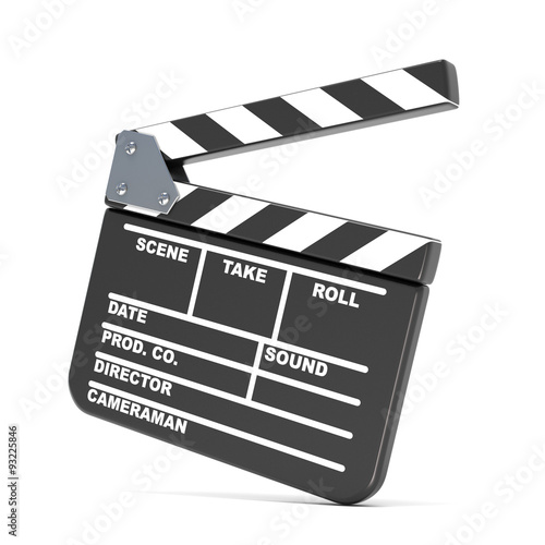 © djmilic, Fototapeta premium Movie clapperboard. 3D render illustration isolated on white background