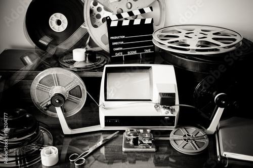 © fabioderby, Naklejka premium Movie editing vintage desktop