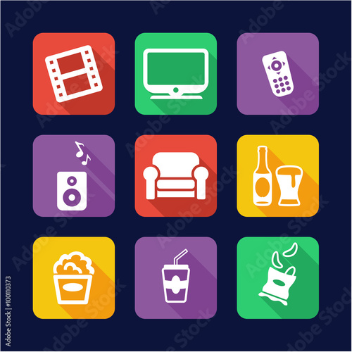 © Bakai, Naklejka premium Movie Night Icons Flat Design