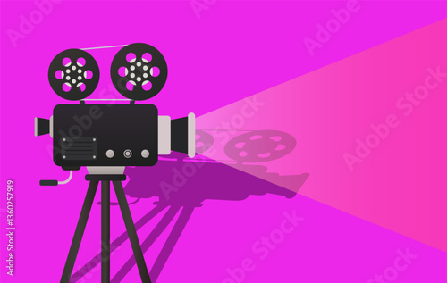 © Anastasia, Obraz premium Movie night set icon. Projector shows active film projection in soft light. Great for cinema, media, creative video content, and entertainment design concepts.
