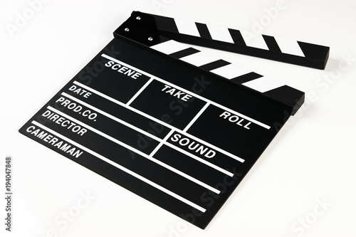 Obraz premium Movie production clapper board. Black clapperboard isolated on white...