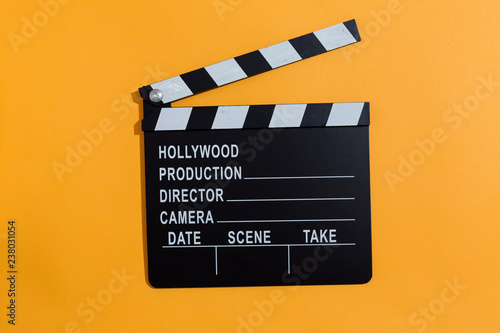 Obraz premium Movie slateboard clapper on a orange background