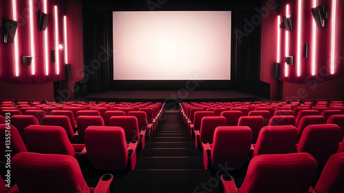 © lnsu, Fototapeta premium Movie Theater Perspective with Centered White Screen