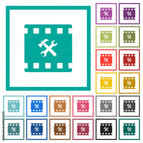 Fototapeta premium Movie tools flat color icons with quadrant frames