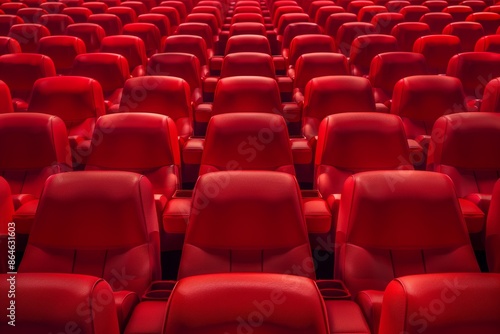© millionaire, Fototapeta premium Movies and cinema, architecture concept. Abstract background of empty cinema theater red seats