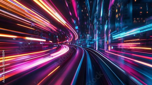 © Berkah, Obraz premium Moving forward motion blur background with light trails ,night scene.