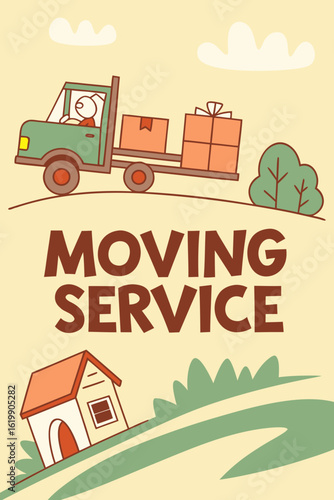 © Eduards V., Fototapeta premium Moving service, truck delivering moving boxes to new home