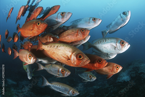 © MDBPIXS, Fototapeta premium Mozambique Indian Ocean school of crescent-tail bigeyes (Priacanthus hamrur)