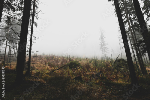 Obraz premium Mroczny las we mgle