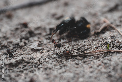 © Exploder, Fototapeta premium Mrówka walcząca z większym owadem