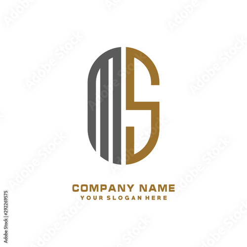 Obraz premium MS minimalist letters, with gray and gold, white, black background logos