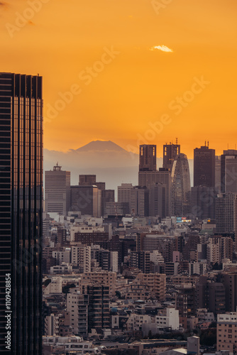 Fototapeta premium Mt. Fuji sunset from Tokyo, Japan