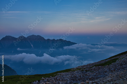 Obraz premium Mt.Kasagatake, evening view 夏の北アルプス笠ヶ岳からの夕景