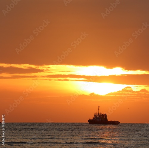 © Abdul Rahman, Fototapeta premium mud dredgers boat at sunset