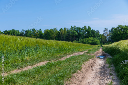 Obraz premium mud on a country road through a field of cereals