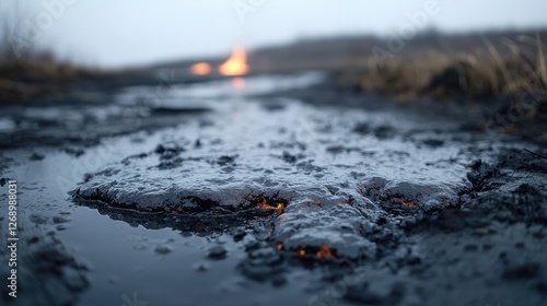 Naklejka premium Mud puddle, fire, early morning, nature