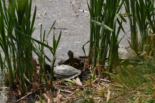 © Cristian, Fototapeta premium Mud turtles on a lake bank. turtles family