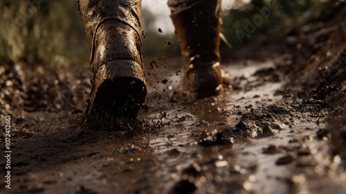 © almeera, Obraz premium Muddy Boots in the Path of a Country Road