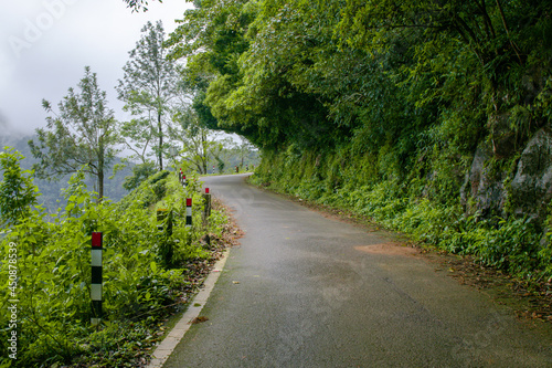 © Harshith, Fototapeta premium Muddy hillside road with thick forest