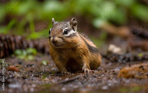 © Sami, Naklejka premium Muddy running chipmunk. Generative AI.