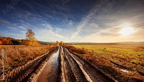 © Acacia, Naklejka premium muddy tracks through autumn field