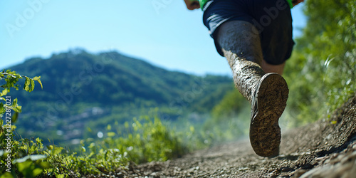 Obraz premium Muddy Trail Runner's Leg and Shoe
