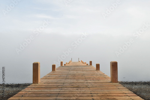 © Marina, Obraz premium muelle de madera entre la niebla