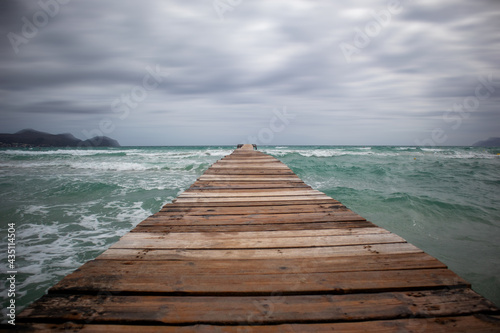 © Lucas, Fototapeta premium Muelle de madera, Platja de Muro, Playa de Muro, Mallorca, Espanha