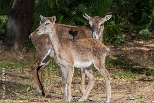 © JOSE ANTONIO, Fototapeta premium muflón común europeo hembra con su cría (Ovis orientalis musimon)
