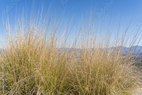 © youli zhao, Obraz premium Muhlenbergia rigens, commonly known as deergrass, is a warm season perennial bunchgrass. Mount Woodson Rd, San Diego County, California. grass