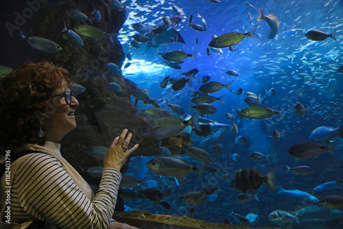 Obraz premium mujer mirando peces en el tunel del aquarium de donostia san sebastian 4M0A4898-as25