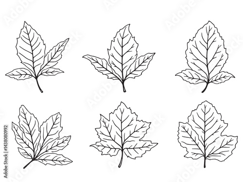 © VCT, Obraz premium Mulberry leaf vector line art illustration