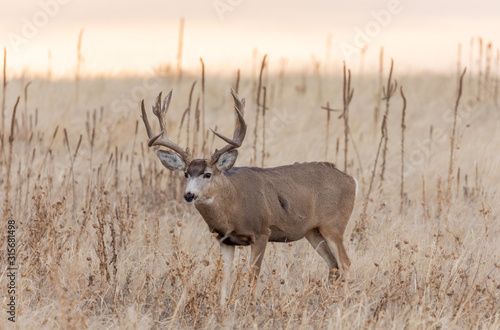 Fototapeta premium Mule dDer buck at Sunrise During the Fall Rut