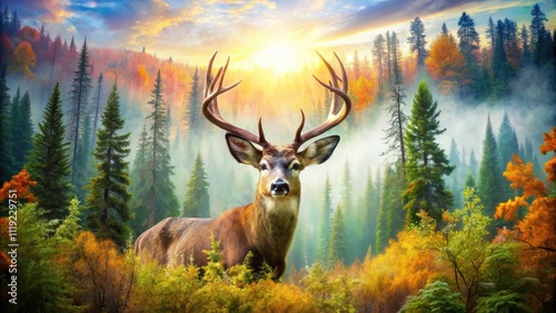 Fototapeta premium Mule Deer Double Exposure Photography: Nature's Majestic Fusion - Wildlife...