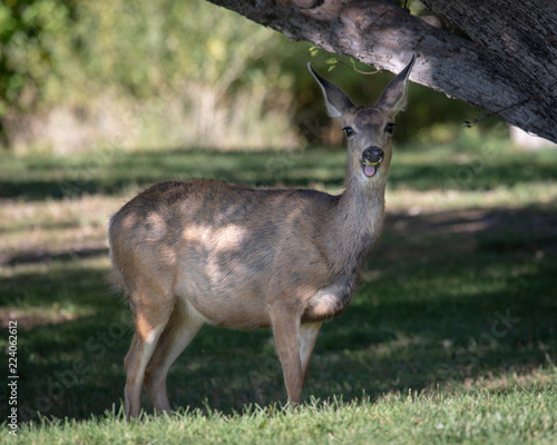 © Susan, Obraz premium Mule deer eating apple