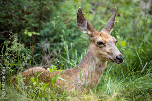 © Tracy King, Fototapeta premium mule deer laying down resting