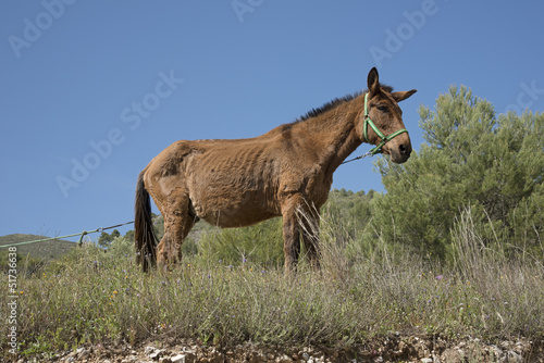 © petert2, Fototapeta premium Mule standing in a field thethered to a rope