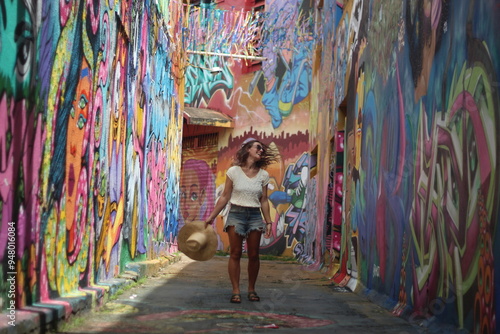 © carina furlanetto, Fototapeta premium mulher no beco do codorna, no centro de goiania, goiás
