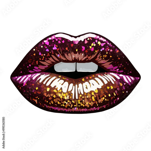 © BreNotic Visuals, Obraz premium Multi-Color Glitter Lips - Bright Sparkly Lip Makeup Close-Up - High Resolution Transparent PNG
