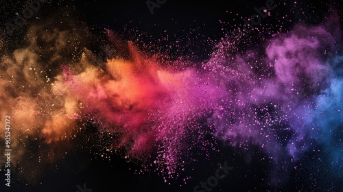Naklejka premium Multi color powder explosion on black background