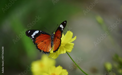 © Diamon jewelry, Fototapeta premium Multi-colored butterflies are sucking pollen from flowers.