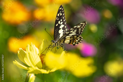 © watchara, Naklejka premium Multi-colored butterflies with flowers,select focus.