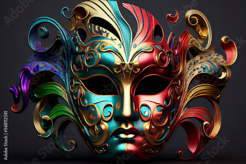 © rufous, Naklejka premium multi-colored carnival mask assembled from a large number of small parts, inspired by the renaissance era